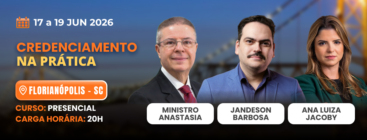 Capacitar os participantes para planejar, decidir, estruturar, executar e controlar procedimentos de credenciamento à luz da Lei nº 14.133/2021, com base na jurisprudência consolidada do Tribunal de Contas da União, especialmente nos Acórdãos nº 533/2022 e nº 2192/2025, ambos de relatoria do Ministro Anastasia. Ao final do curso, o participante estará apto a identificar quando o credenciamento é juridicamente adequado, definir critérios válidos de classificação, escolha e convocação, estruturar preços e requisitos de habilitação, elaborar editais e contratos de credenciamento e utilizar a Inteligência Artificial como ferramenta de apoio, com segurança jurídica e alinhamento às exigências do controle externo